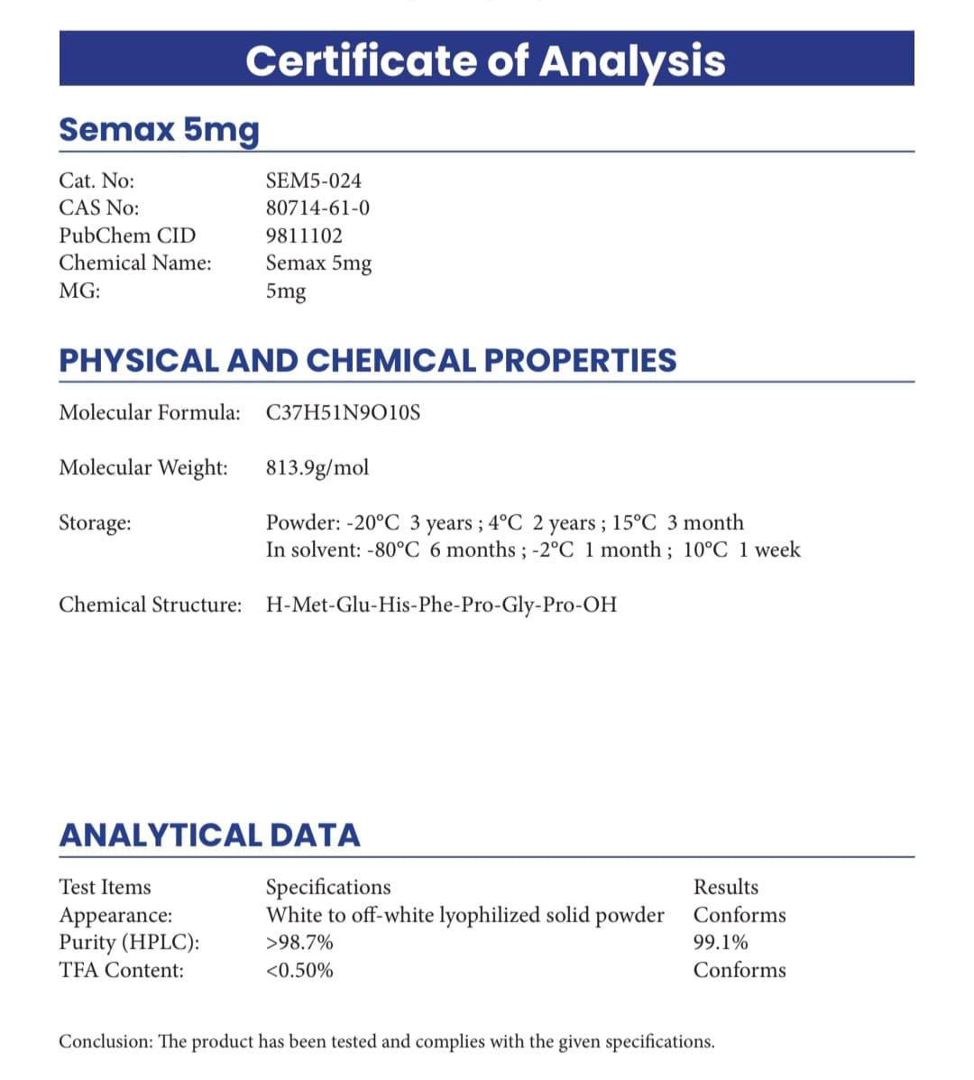 Semax is a synthetic derivative of adrenocorticotrophic hormone. Research suggests that it can increase BDNF and may help improve immune function, protect neurons, and improve cardiovascular function.