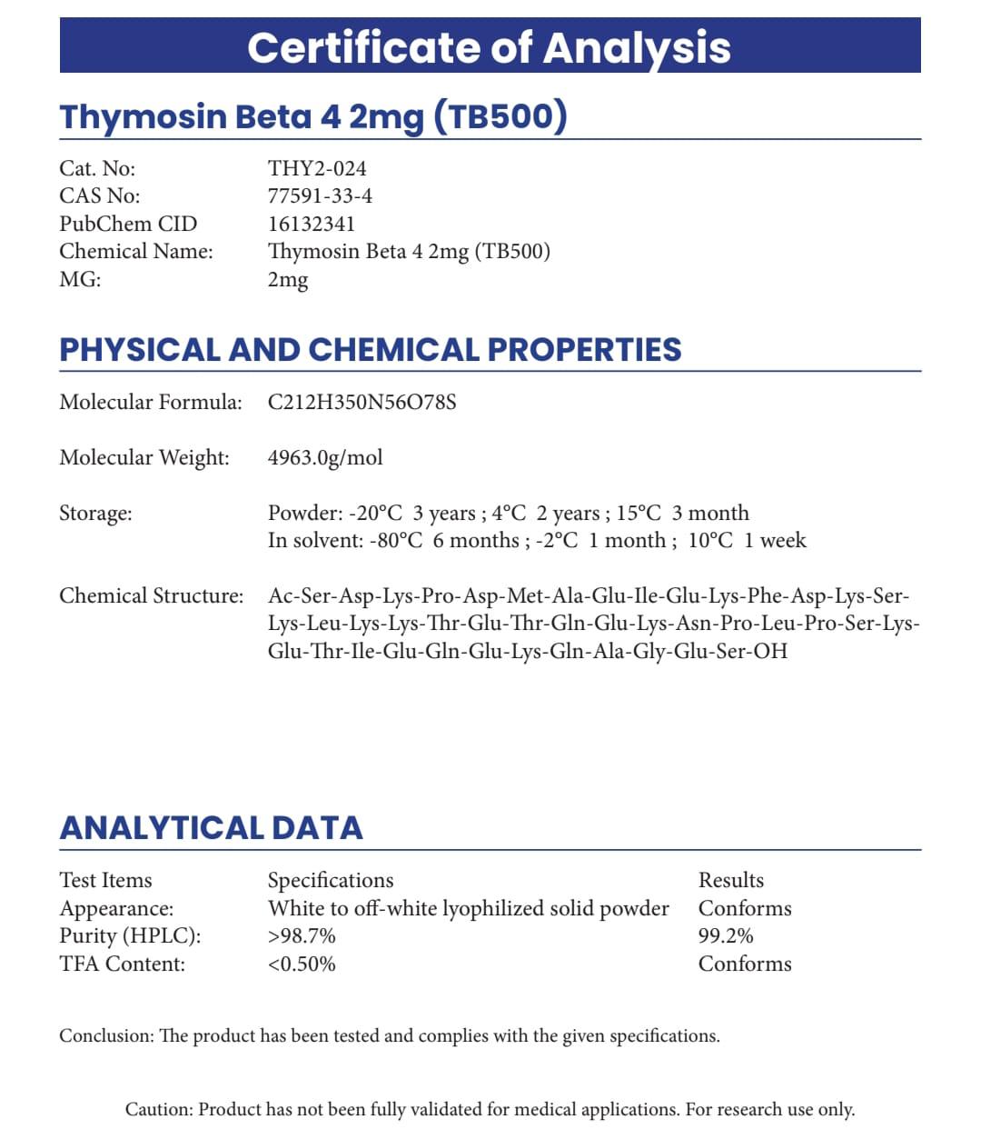 Thymosin Beta 4, or TB-500, is a synthetic version of a naturally occurring 43-amino acid peptide present in nearly all human and animal cells studied.
